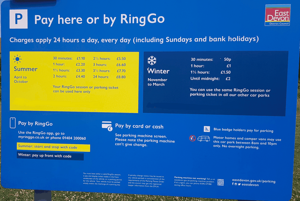 Image shown is a generic image of a sign common to many East Devon Car Parks